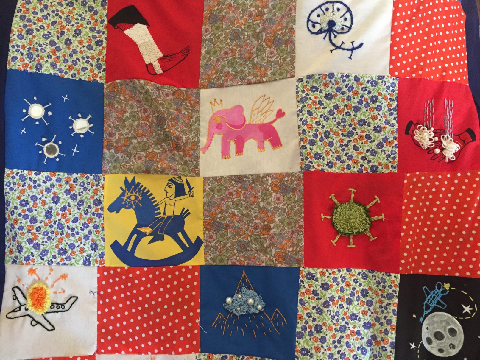 J’ai commencé à créer cette mosaïque dont chaque carré représente un événement remarquable de ma vie survenu pendant l’année 2020. Cette année est évidemment très spéciale pour beaucoup d’entre nous, et j’y ai exprimé en quoi elle l’a été à titre personnel ; l’avion ukrainien qui a chuté en Iran, la disparition d’un membre de ma famille, la pandémie, mais également des éléments brodés qui m’ap- portent de l’espoir, comme les beautés de la nature.