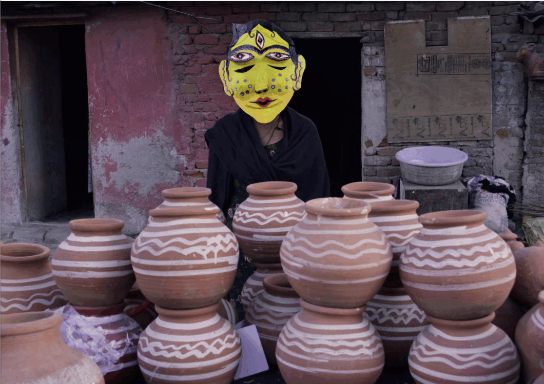 melting under the sun, silent in the dust, musical amidst the roar of traffic. During my residency in Faridabad, India, a country known as the land of a thousand gods and goddesses, I found myself living next to a bustling street market. From the first glimpses of dawn until the last light of day, the road outside filled with life: the incessant sound of horns, the thick waves of dust in the air, the vibrant chaos of everyday life. At the heart of this urban rhythm, one image remained with me more than any other: that of the women who sell vases and flowers all day under an unrelenting sun. They sit or stand, calmly, surrounded by the handcrafted beauty they offer to passersby, their expressions peaceful, their gestures measured. There is no staging here, no ceremony, and yet, for me, they embody something deeply sacred. In this place where divinity is often found in stone, temple, and ritual, I discovered a more discreet form of spirituality in these women. There is strength in their silence, grace in their resilience. They move through the dust and noise with the dignity of the eternal. Thus, in this land of multiple divinities, I found these gods not sculpted or painted, but alive and present in the ordinary of daily life.