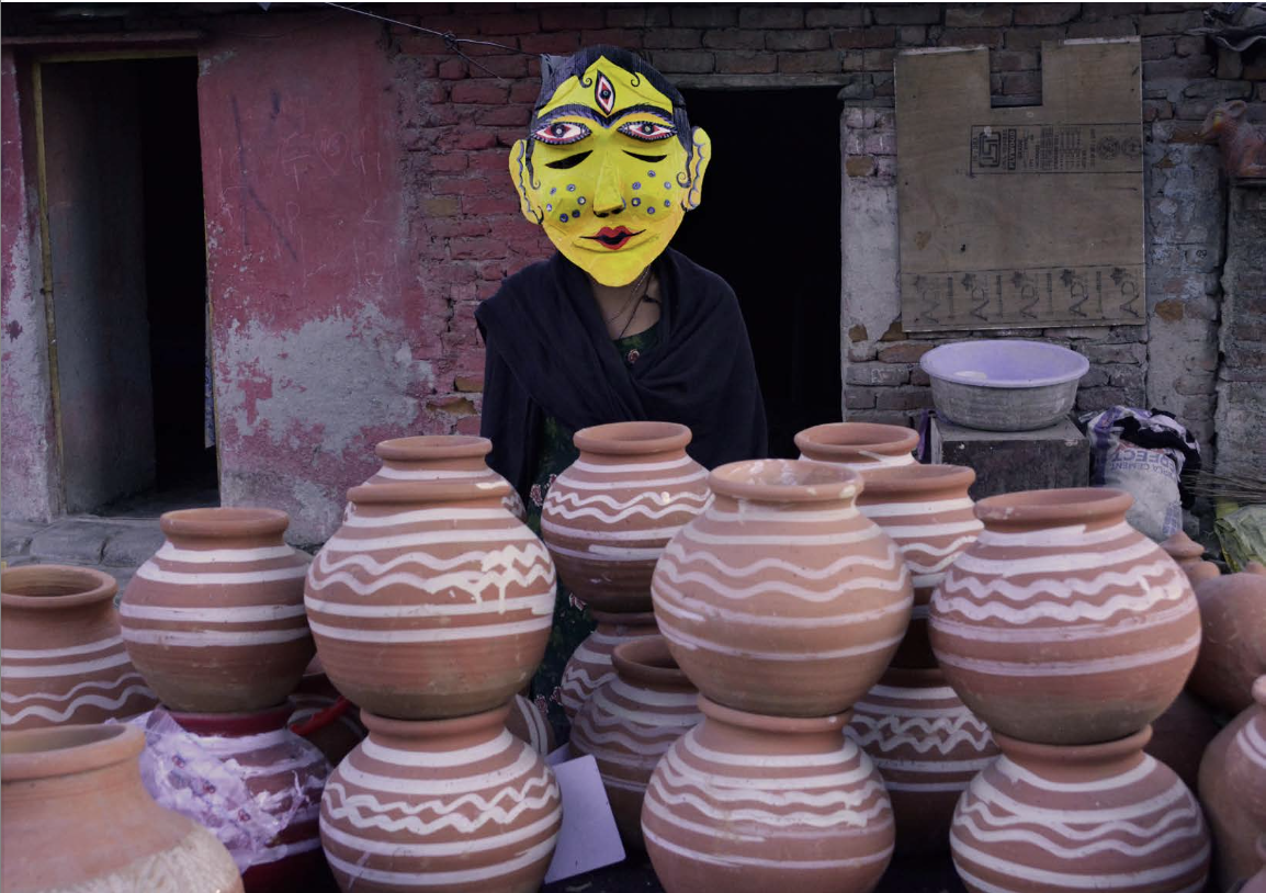 melting under the sun, silent in the dust, musical amidst the roar of traffic. During my residency in Faridabad, India, a country known as the land of a thousand gods and goddesses, I found myself living next to a bustling street market. From the first glimpses of dawn until the last light of day, the road outside filled with life: the incessant sound of horns, the thick waves of dust in the air, the vibrant chaos of everyday life. At the heart of this urban rhythm, one image remained with me more than any other: that of the women who sell vases and flowers all day under an unrelenting sun. They sit or stand, calmly, surrounded by the handcrafted beauty they offer to passersby, their expressions peaceful, their gestures measured. There is no staging here, no ceremony, and yet, for me, they embody something deeply sacred. In this place where divinity is often found in stone, temple, and ritual, I discovered a more discreet form of spirituality in these women. There is strength in their silence, grace in their resilience. They move through the dust and noise with the dignity of the eternal. Thus, in this land of multiple divinities, I found these gods not sculpted or painted, but alive and present in the ordinary of daily life.