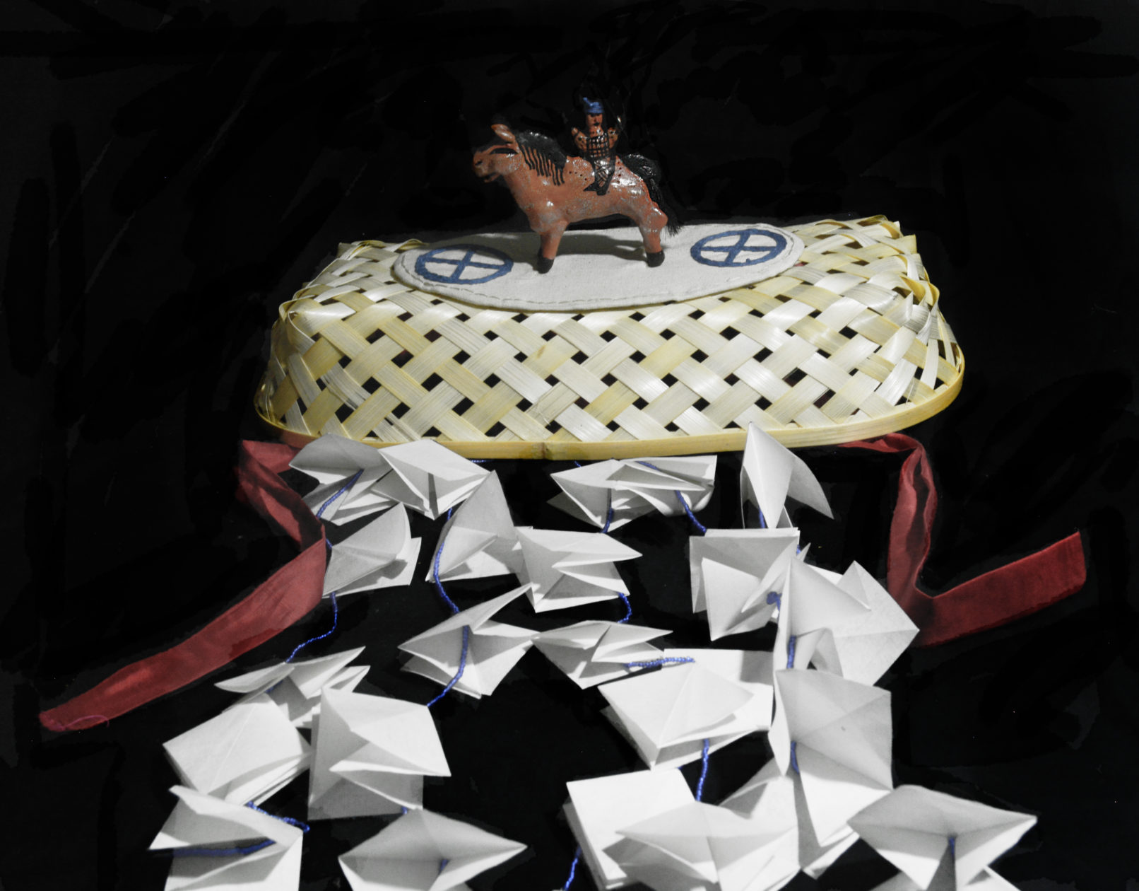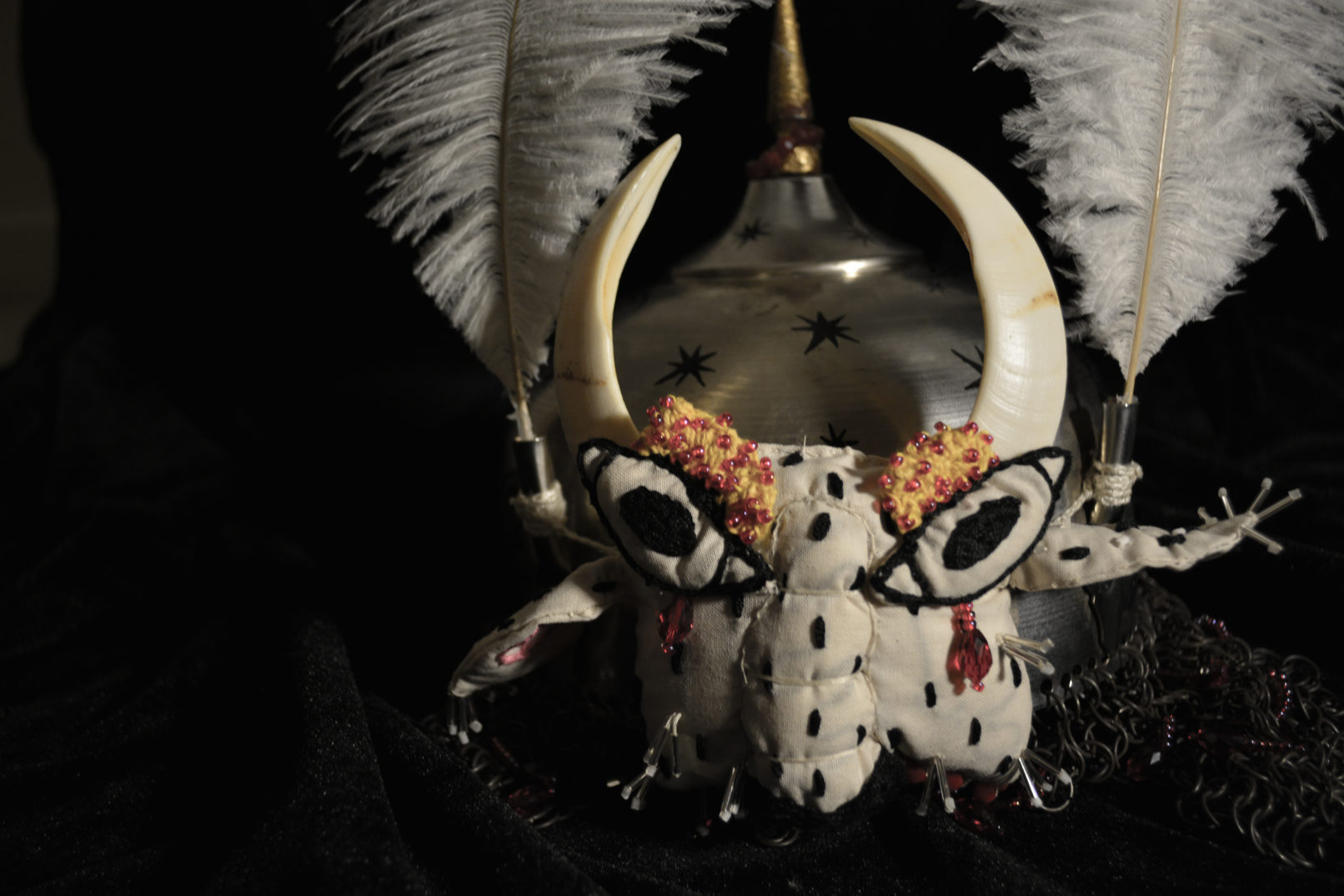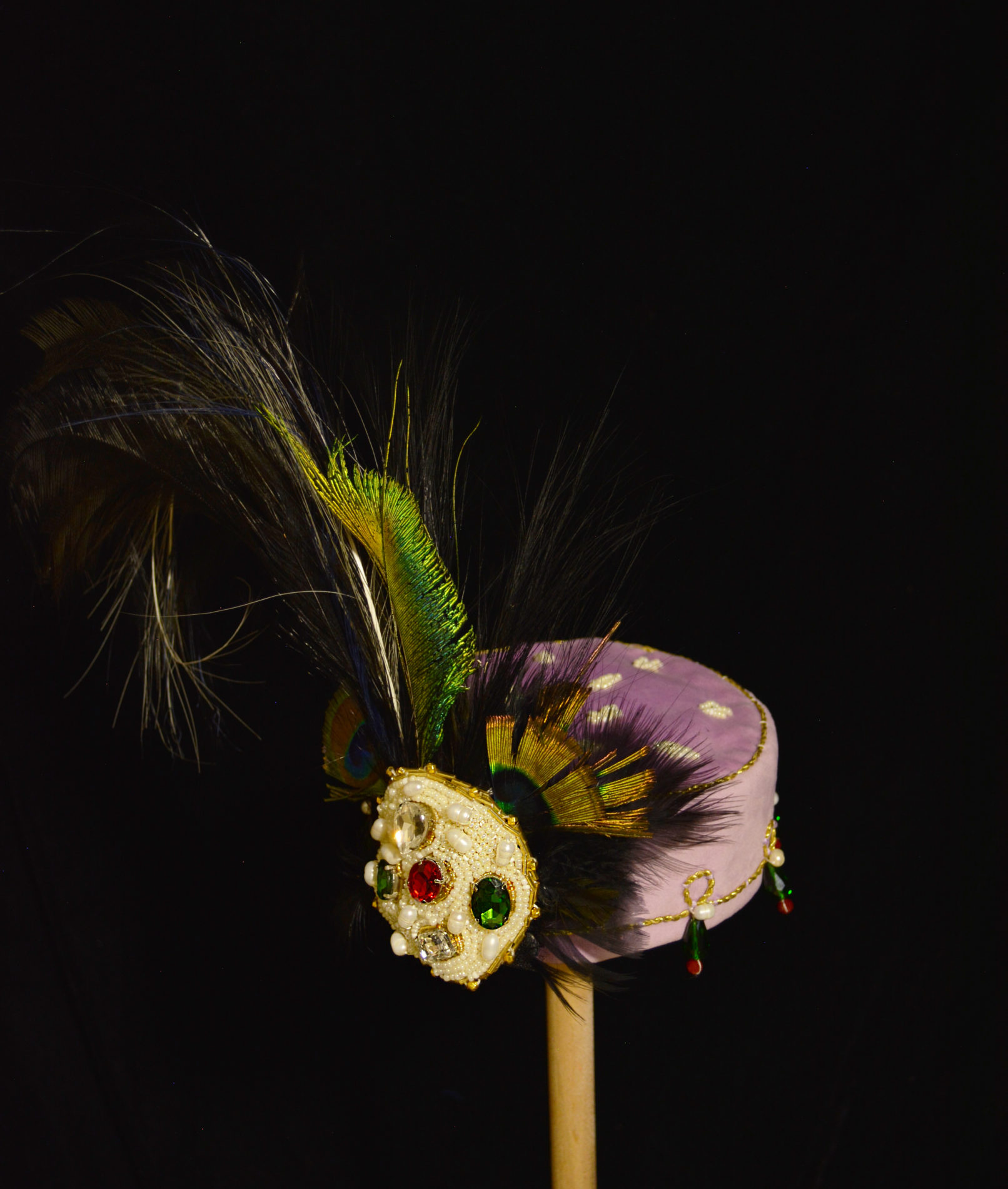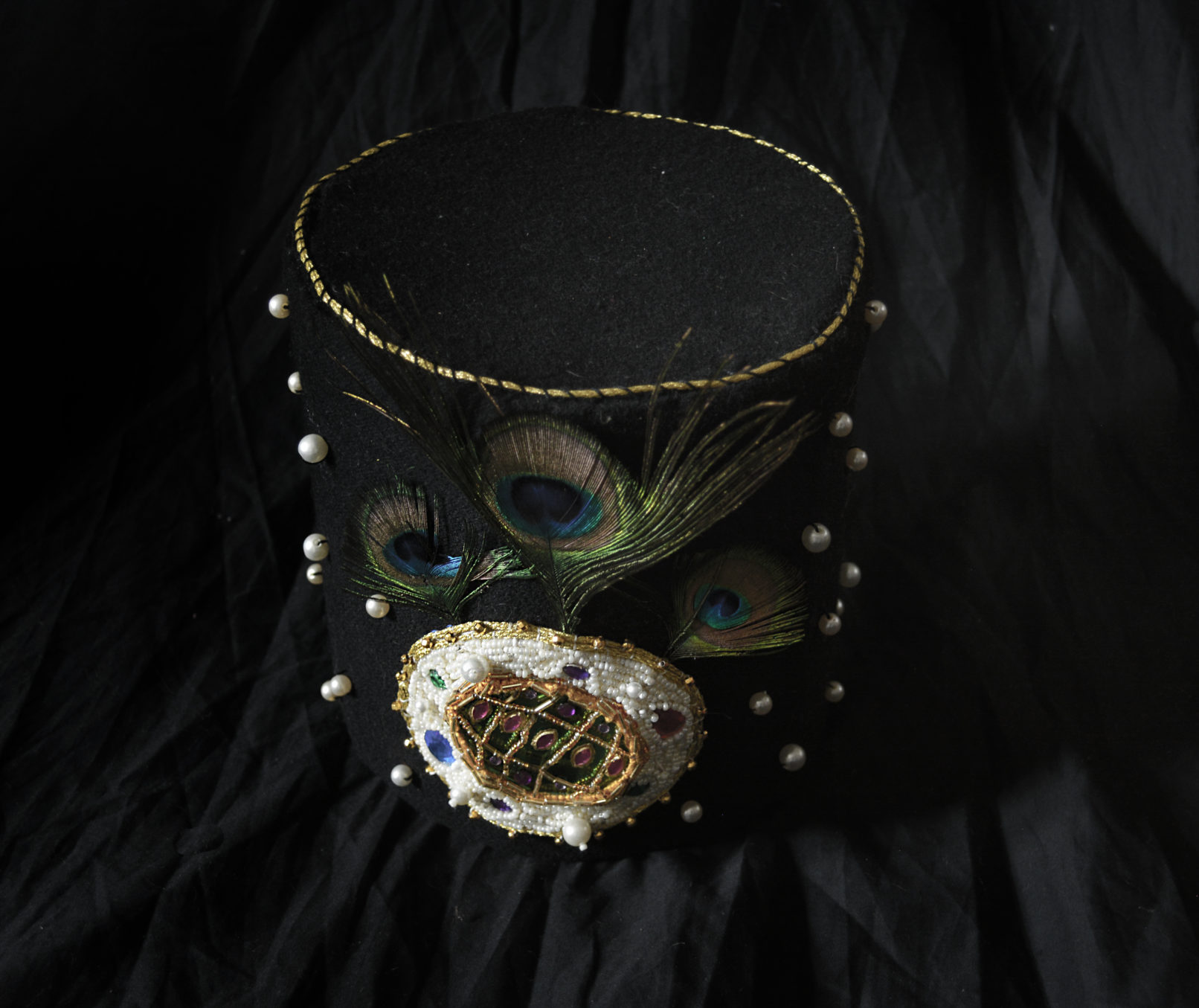 Je m’immerge dans chaque culture pour apprendre les techniques de fabrication de chaque coiffe, ce qui m’offre une approche ethnographique unique. Ce projet me permet de découvrir des méthodes de travail différentes et d’élargir mon univers artistique. Les coiffes que je crée racontent des histoires et véhiculent des croyances à travers leurs broderies, leurs symboles, leurs formes et leurs couleurs. En les portant et en me mettant en scène dans des tableaux théâtraux, j’anime les origines mythiques de ces pièces.