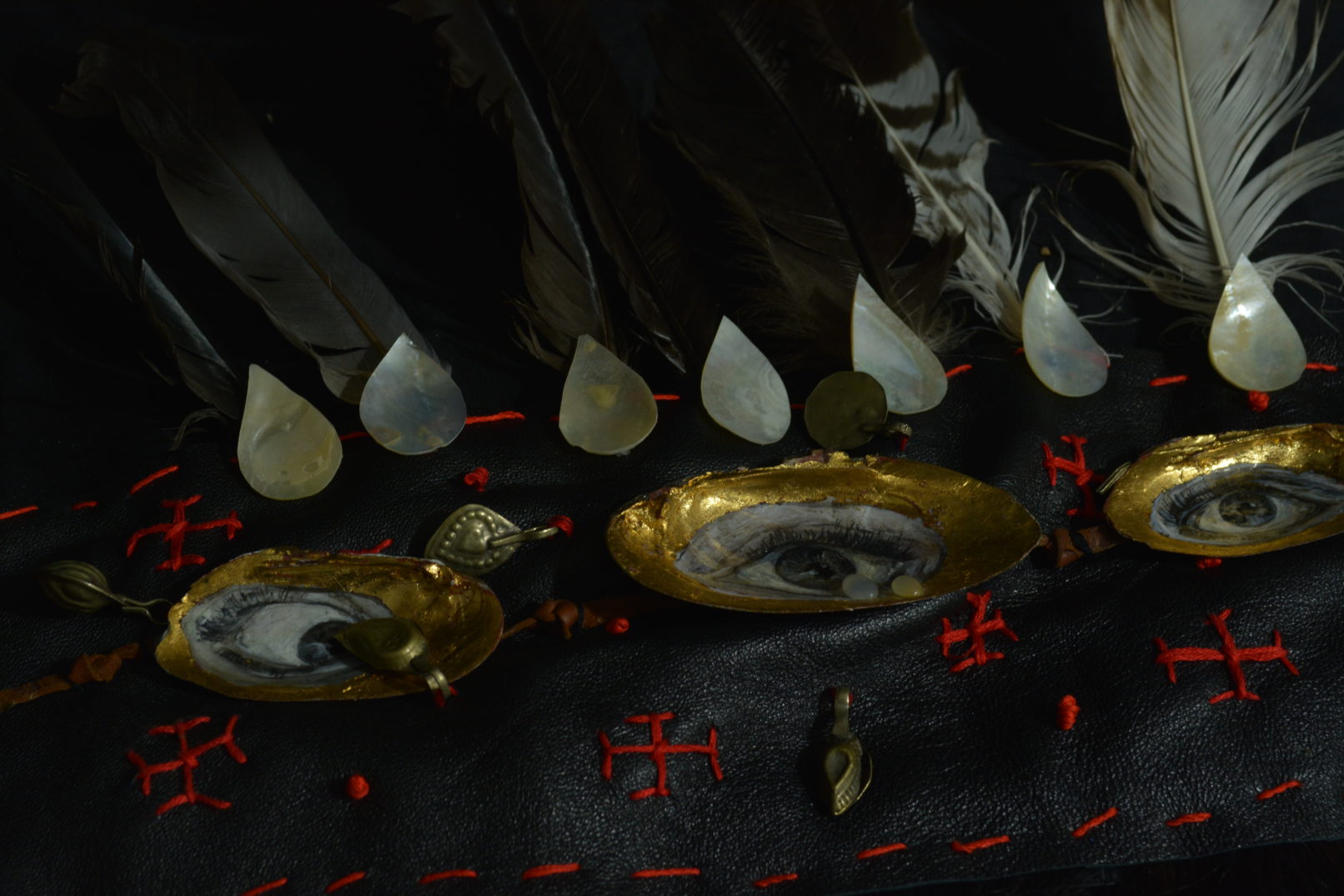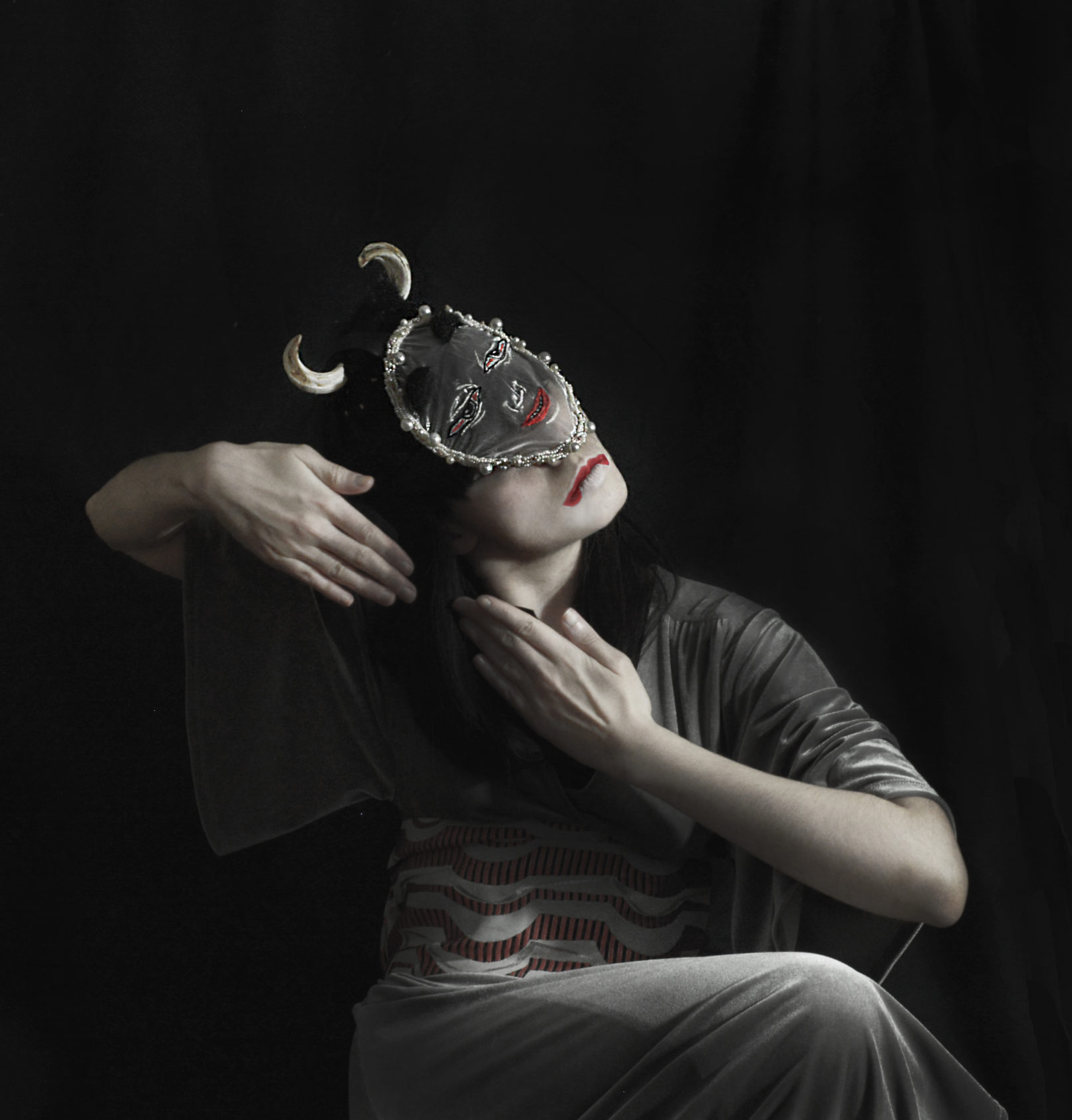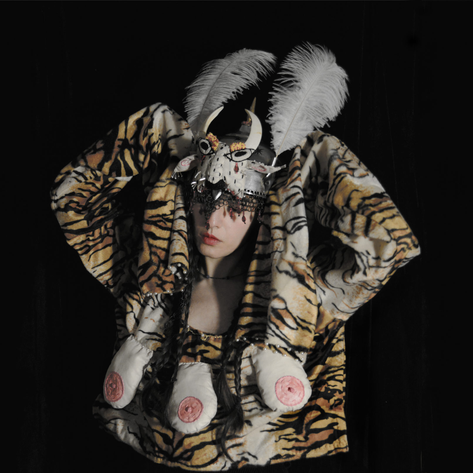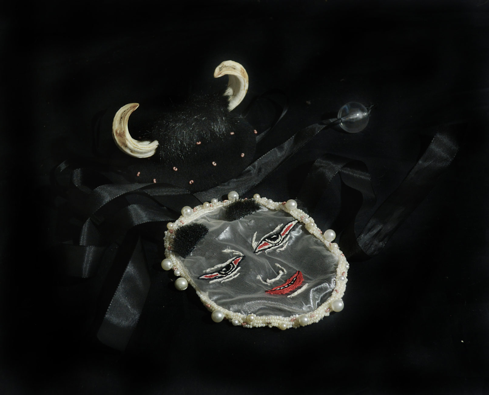 I immerse myself in each culture to learn the craftsmanship techniques of each headdress, offering a unique ethnographic approach. This project allows me to discover different working methods and expand my artistic universe. The headdresses I create tell stories and convey beliefs through their embroideries, symbols, shapes, and colors. By wearing them and staging myself in theatrical tableaus, I bring to life the mythical origins of these pieces.