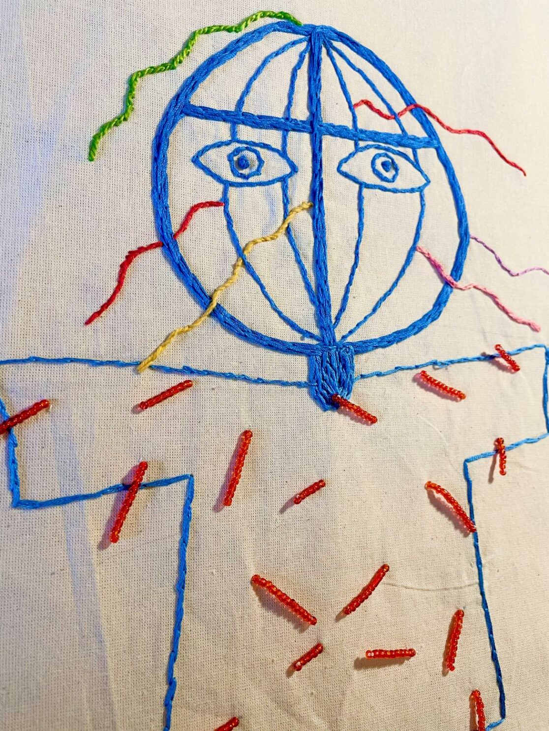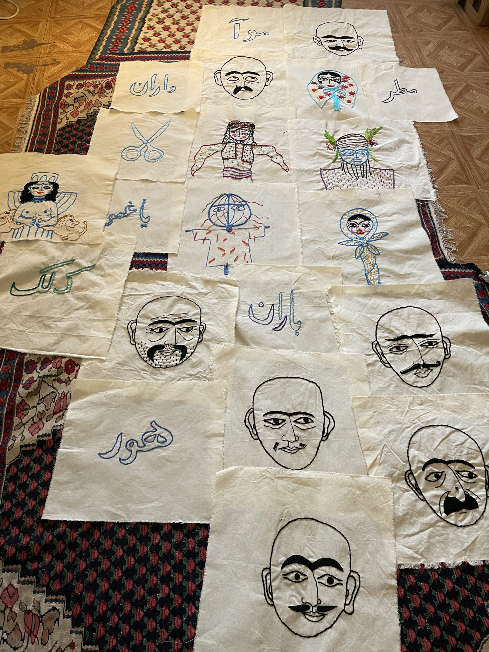 Embroidery has emerged as the ideal technique for this work, as it is repetitive, like a mantra prayer. Many be- liefs, including those of Iran, consider embroidery to be a form of magic: when the image is formed with needle and thread on the fabric, power is infused into the ob- ject. Whoever uses this embroidery as decoration or an object in their home should know that it is imbued with magic and can bring good or bad fortune.