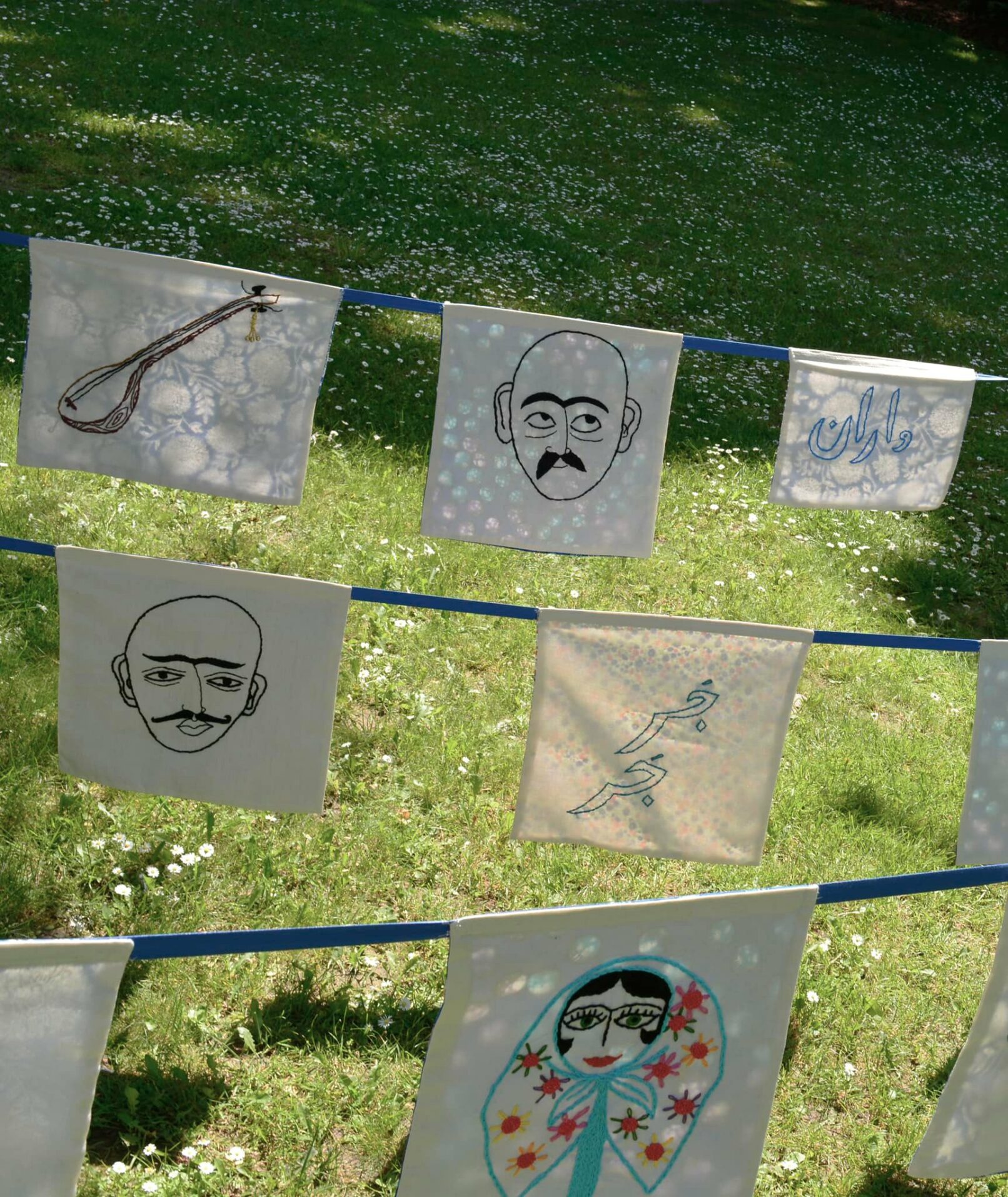 The number forty has a special significance in Persian magical beliefs, hence my choice to make forty flags in this installation, each measuring 40×40 cm.
