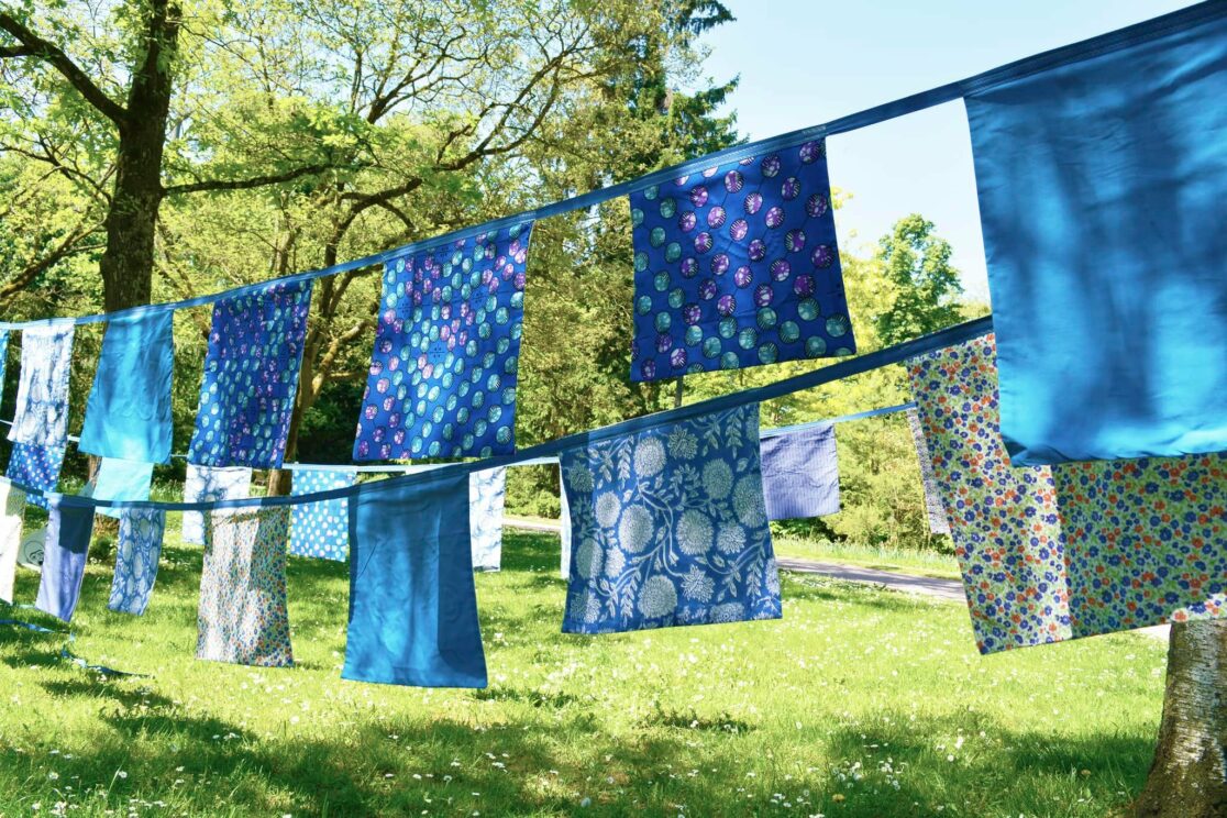 Croquis de l’installation des drapeaux de pluie quelques exemples de broderies