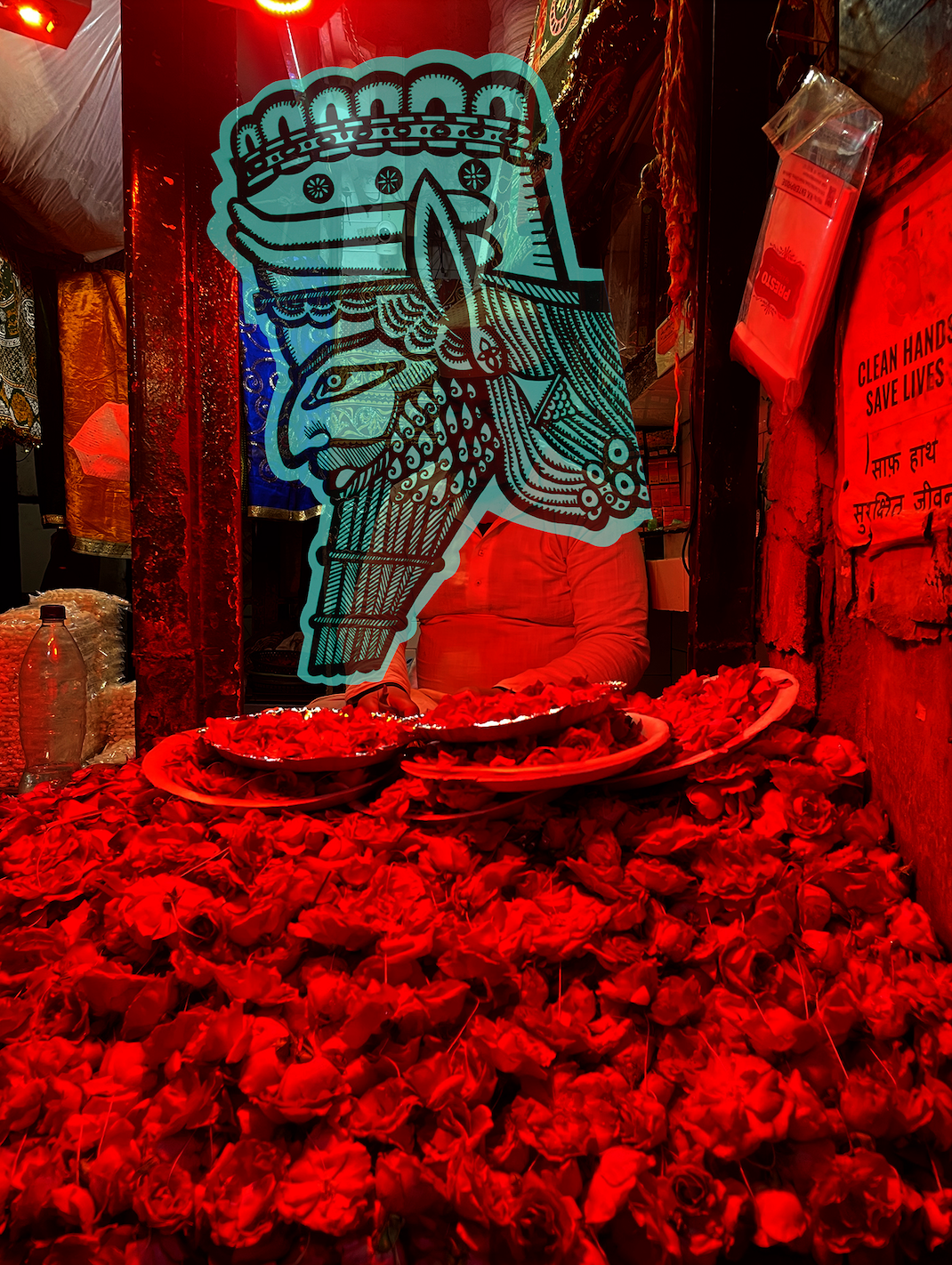 During my residency at Villa Swagatam, I experienced an uncanny sense of familiarity moving through the streets, temples, and markets of India—something that felt less like discovery and more like remembering. In the textures of their fabrics, the rhythm of their music, and the devotion of their prayers, I recognized echoes of my own cultural memory. The myths and gods that shaped my ancestors seemed present there too, woven into the vibrant life of India as if carried across time.