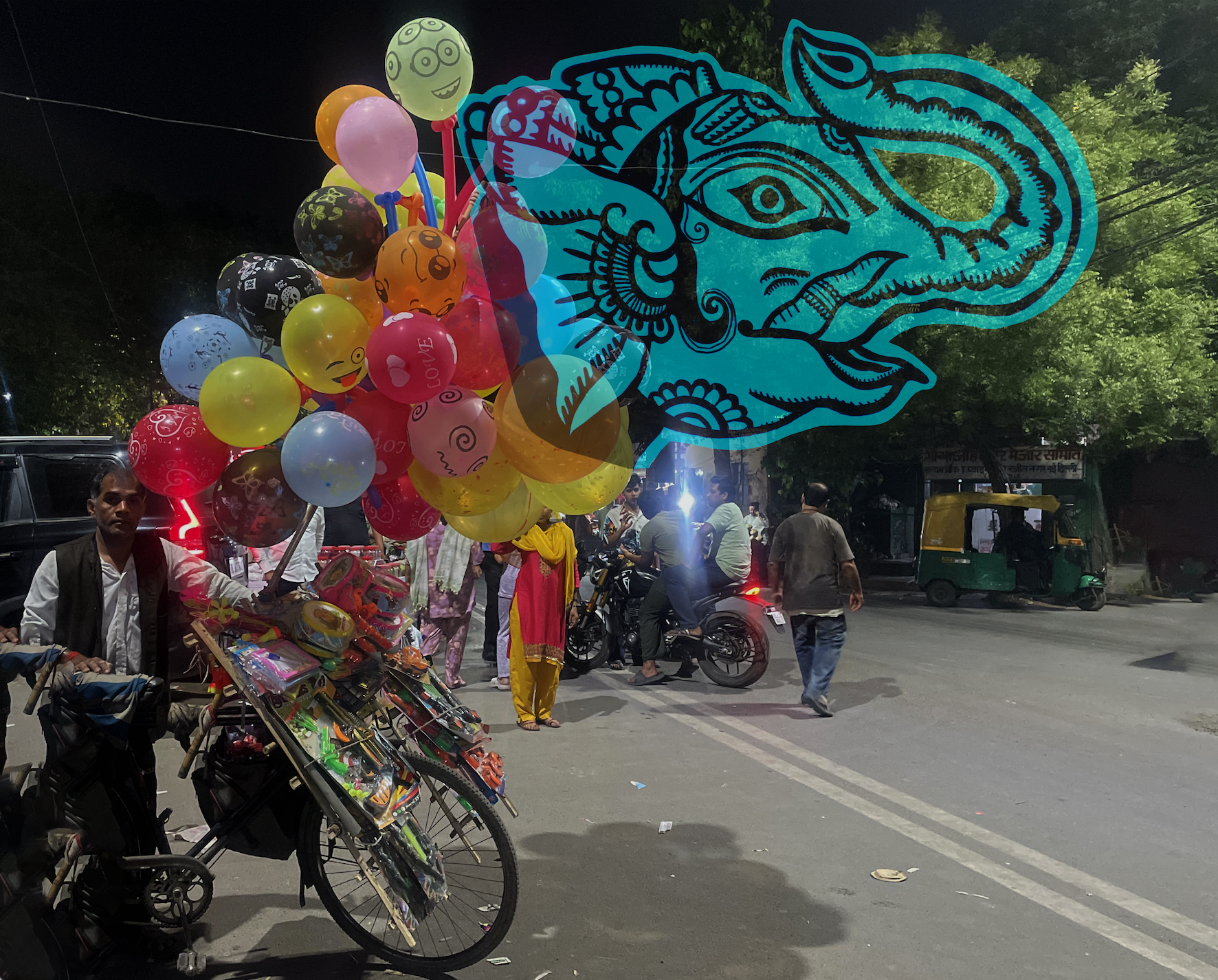 During my residency at Villa Swagatam, I experienced an uncanny sense of familiarity moving through the streets, temples, and markets of India—something that felt less like discovery and more like remembering. In the textures of their fabrics, the rhythm of their music, and the devotion of their prayers, I recognized echoes of my own cultural memory. The myths and gods that shaped my ancestors seemed present there too, woven into the vibrant life of India as if carried across time.